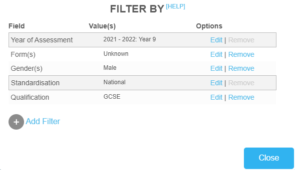 Click Edit to change the field values, click Remove to disable a filter or click Add Filter to reinstate or add a new filter.