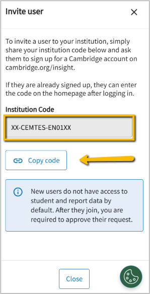 - Your invitation code will appear on the right of your screen. Copy and share with the new user.
