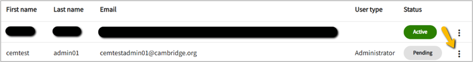 - Find your colleague’s email address and click on the three dots to the right of “pending”.